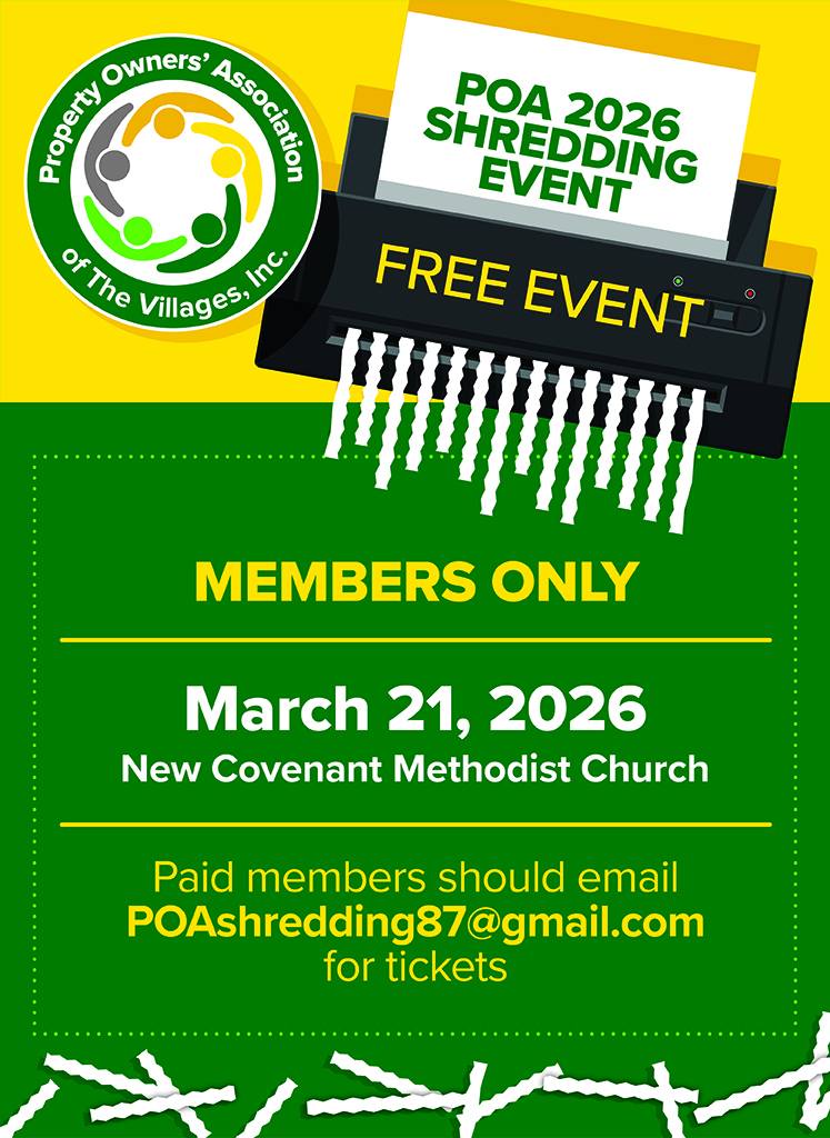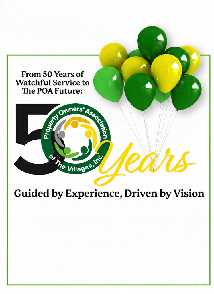 The Property Owners’ Association, Inc. (POA) is a champion for the residents' rights of The Villages. Guided by member input, investigation, and determination, the POA brings attention to and acts on issues that may impact property values and quality of life.